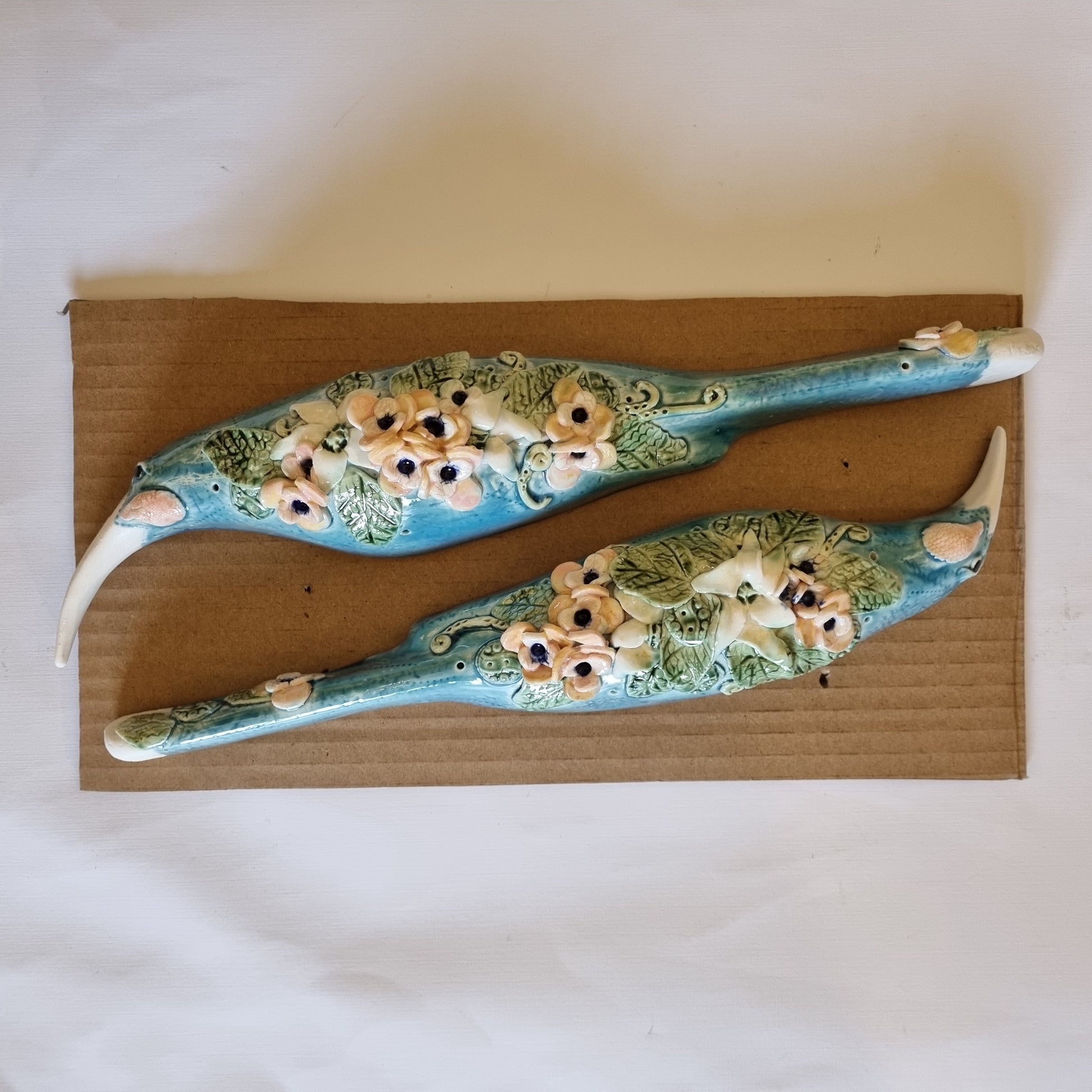 Floral Blue Birds with Crackle Glaze PAIR