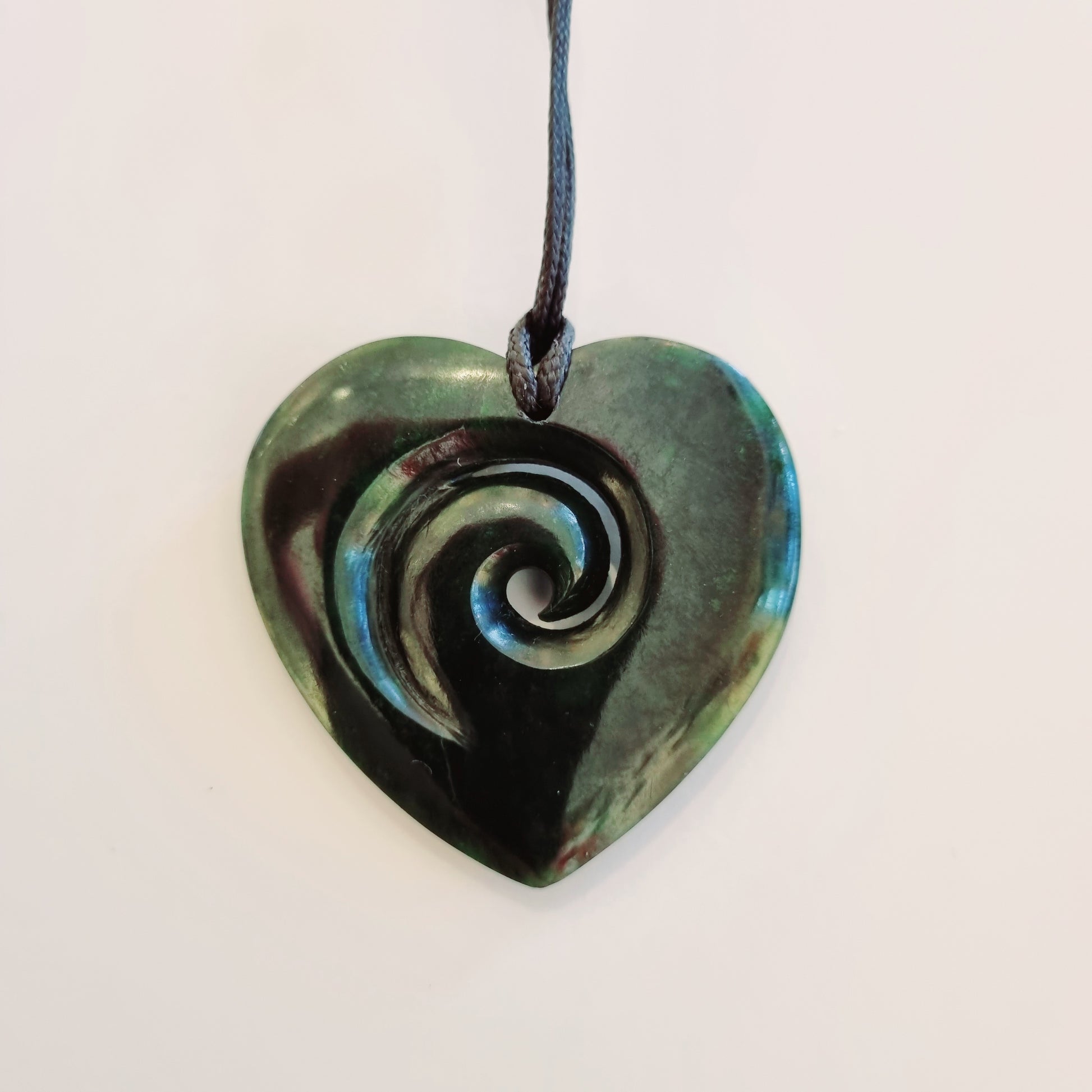 Greenstone pendant Heart with Koru/Fern inside
